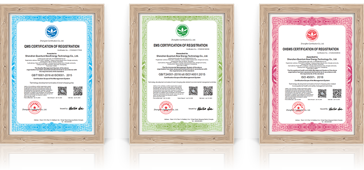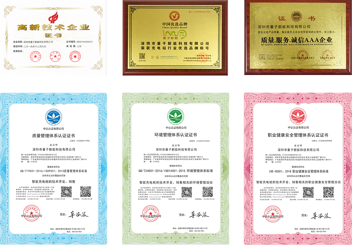 量子新能一直非常注重自主品牌的建设与产品质量提升,为了实现科技与信息、技术与管理、环保与节能等领域保持国际先进水平,量子新能积极推行生产6S管理和质量、环境、职业健康安全管理,积极开展体系认证工作,先后通过了ISO9001、 ISO14001、OHSAS18001体系认证。量子新能已经形成了“智能硬件+SAAS开放平台+赋能运营”一体两翼的全生态业务模式,通过高适应的统一技术标准,以及云、网、端一体化的服务标准,持续为政府消防应急部门、充电运营企业及物业管理者、终端用户提供智慧化的整体解决方案,帮助客户实现运营管理的降本、提质、增效。